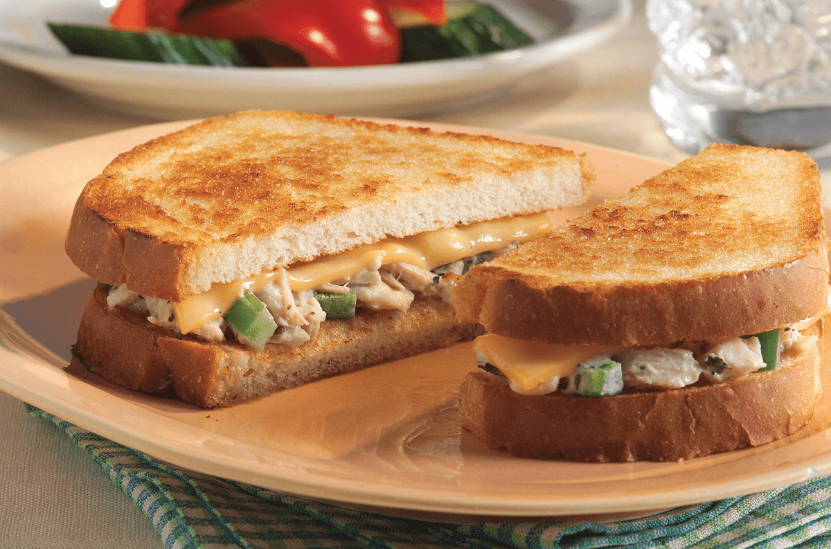 Fill bread slices with tuna mixture and Singles to make 4 sandwiches. Spread outside of sandwiches with remaining mayo.